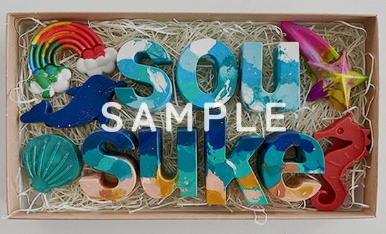 SKY SEA crayonsのショッピングサイトでは、 カラフルなモチーフ&アルファベットクレヨンを販売しております。 1つ1つ手作りで全て配色が違う世界に1つだけのクレヨンになりますので ご自宅用はもちろんギフトとしても喜ばれます。 大切な方と、彩りあふれるひとときを、お楽しみください。